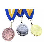 Fotbollsmedalj i guld, silver eller brons.