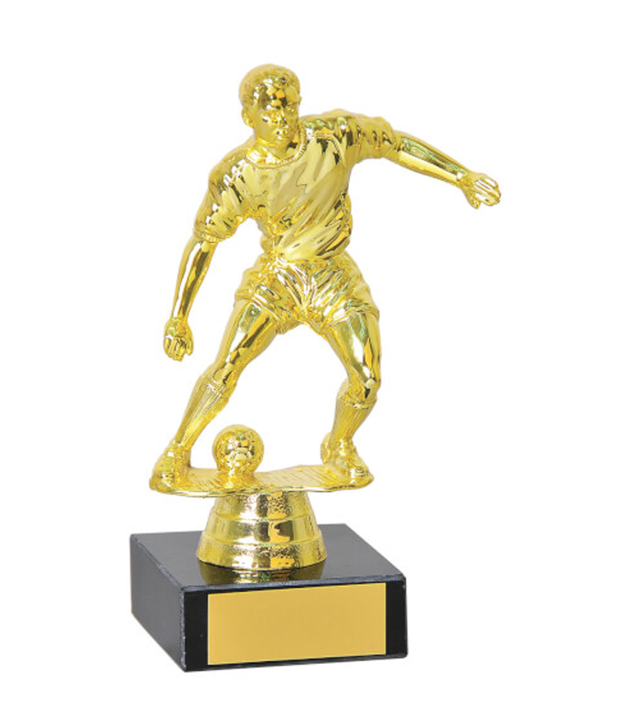 Prisvärd fotbollsstatyett i guld på svart marmorsockel - herr.